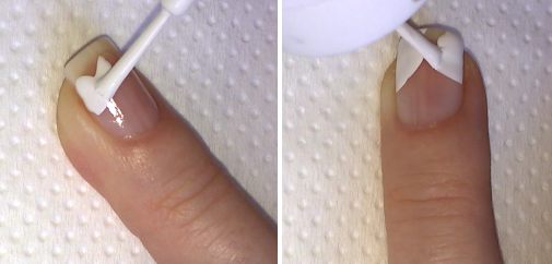 2. Paint with white pearl polish the nails of index fingers, little fingers and thumbs:
