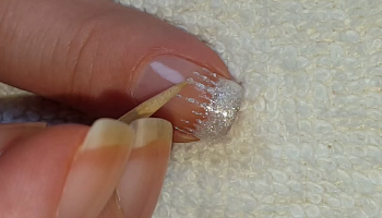 2. Put white sparkle glitter polish over the nail tip: