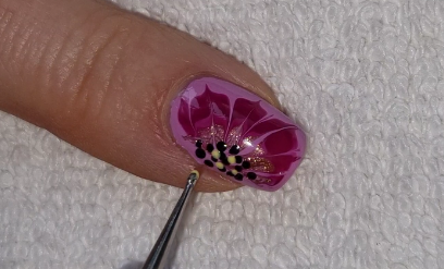 With a big dotting too paint light greenish blue dots over the nail it, then paint the whole tip with this color:
