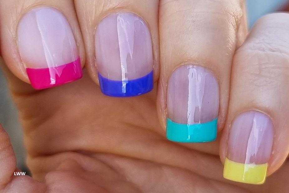 Grab a striping brush and paint colorful lines from the edge of the nail to the middle.